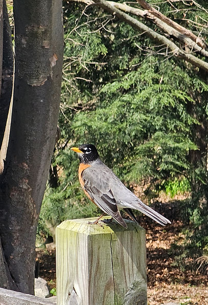 On the way to yoga, a robin straddled a crack in the sidewalk, interrupting my regular Monday evening route. When I tried to step around, it hopped into my ankle, head bobbing on its fox-fronted neck.
